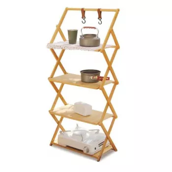 Elegant Black Floor Lamp with Wooden Shelves and LED Bulb